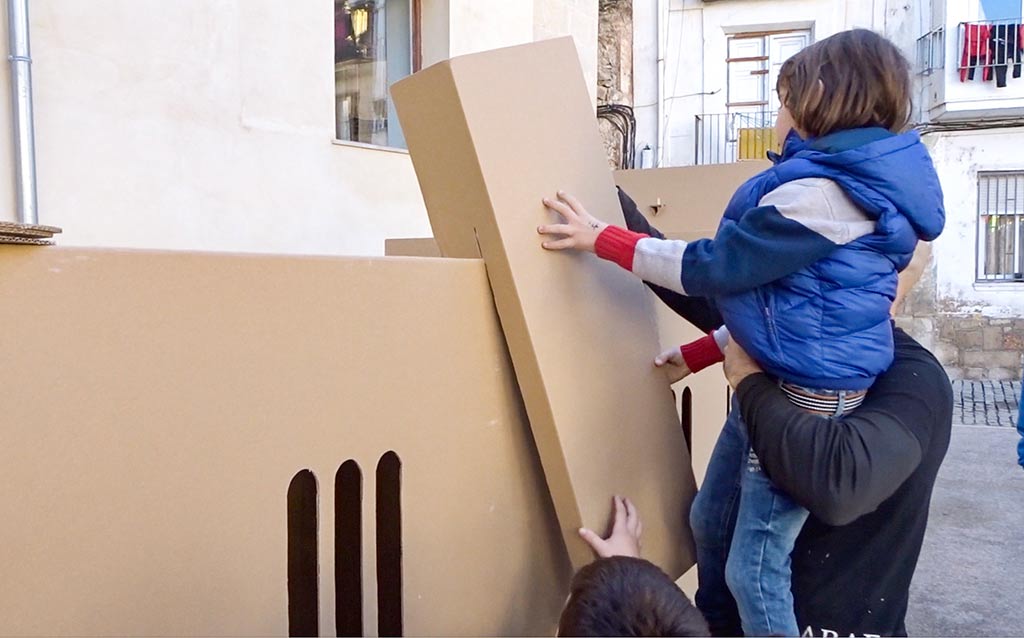 El día 7 de diciembre, en el centro histórico de la capital del Bajo Ebro, se llevó a cabo la última de las reconstrucciones en cartón reciclado que el equipo de arquitectos ha realizado sobre construcciones defensivas durante los últimos quince meses por una selección de poblaciones de la geografía española.